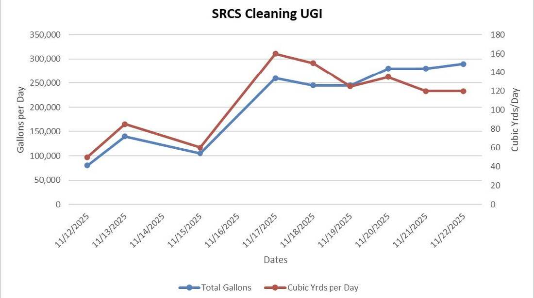 The project cost was $118,000 for operating the SRCS on-site for 10 days. The costs of mobilizing pumps, the control station, the dewatering trailer, generators, staff and other ancillary equipment totaled $25,000. The total cost of the project was $143,000.